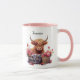 Cute Highland Cow Rosa Pastel Blommigt Vattenfärg Mugg