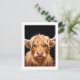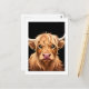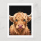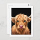 Vacker Cute Brown Highland Cow Porträtt Postcard - Scottish cattle art from Ricaso - en häpnadsväckande, nära konst av en fluffy ko med stort själsligt ögon