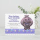Cute Hippopotamus Baby Shower Party Inbjudan har vår söta afrikanska hippo-karaktär från vår linje Animal Parad som står ovanpå en lila gräns med en rattle och nappar. Till lämnat om den söta hippo är all din party-information. Se till att anpassa allt till din egen party. På framsidan visas roligtens hippo med all party-information och på baksidan ser du den roliga vatten-hästen bakifrån. Denna roligt party-kungörelse kommer att ge ett leende till ansikte i alla häckar av älskare, hästälskare i vatten, safari djur älskare, Afrika djur älskare och vild djur älskare i alla åldrar. Gå på safari i dag och kasta en hippo-temad babydusch med vår roligt hippo samordnade baby-gåvor och tillbehör.