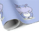 En blå Wrapping Papper med en söt hippo i tecknad stil. En trevlig idé om en gåva paket till ett barn eller älskare av Kawaii-karaktärer!