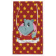 Personligens illustration av en söt hippo i rosa cirkel på röd bakgrund, med anpassade textmall för namn eller meddelande