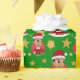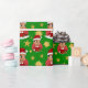 En julomslutning papper med en illustration av en söt, leende hispanic/Latino-pojke med svart hår från kort, pojken bär en Jultomten-kostym med en röd hatt och håller kvar en present. I en röd cirkel på en grönt med stjärnor, en juldesign med en redigerbar helgdagar för ditt namn eller meddelande