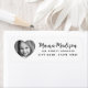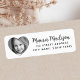 Cute-returetiketter med ett hjärtformade foto och fält för ditt namn och adress på en vit eller anpassningsbar färg-bakgrund. Namn eller namn i familjen i ett typsnitt med visuella skript. Byt typsnitt och färg i designen verktyg.