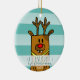 Cute Hjort's First jul Ceramic Ornament. Cute hjort på blå bakgrund med rand. Anpassa prydnaden med baby namn och födelseåret och gör er till en egen julfest.