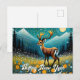Cute Hjort Flowers Meadow Fantasy Helg Vykort
