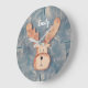Cute Hjort Head Winter Blue Namn Nursery Stor Klocka