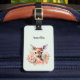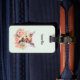 En bagagemärke med en vacker illustration med en söt hjort. Omgiven av rosa ros och blommor.