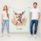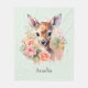 Blankett med en vacker illustration med en söt hjort. Omgiven av rosa ros och blommor.