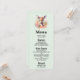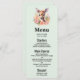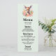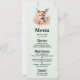 Menykort med en vacker illustration med en söt hjort. Omgiven av rosa ros och blommor.