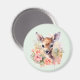 Magnet med en vacker illustration med en söt hjort. Omgiven av rosa ros och blommor.
