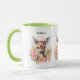 Ett mugg med en vacker illustration med en söt hjort. Omgiven av rosa ros och blommor.