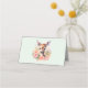 Placera kort med en vacker illustration med en söt hjort. Omgiven av rosa ros och blommor.