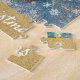 Cute hjort snowflake God jul killars pussel. Tvätta renar med vit snöflingor på blå och vit bakgrund. God jul-text finns i ett trendig-vitt skript.