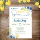Hon hittade sin huvudsakliga klämmmall för inbjudningskort för möhippan. Cute lemon med blått och gult möhippa inbjudan