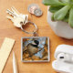 Cute Hopnice Black-Caps Chickadee Songbird Fyrkantig Silverfärgad Nyckelring
