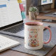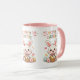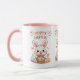 Celebrate the joy of Easter with this adorable Cute Hoppy Easter Bunny Mug. Featuring a charming kawaii-style white bunny holding a basket of colorful eggs, surrounded by flowers, butterflies, and pastel accents, with vibrant "Hoppy Easter!" text in rainbow colors. The pink interior rim adds a sweet touch to this whimsical design, perfect for springtime sipping or gifting.