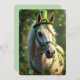Skicka hälsning med det här söta och roligt kortet! Den har en söt, vit häst med grönt hatt, brun och schampar. Anpassningsbar och tillbaka. Passar till St. Patrick's Day, Birthdays med mera.