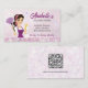 Elevate your cleaning business’s first impression with this adorable yet professional maid-themed business card, perfectly suited for house cleaning professionals, residential maids, and deep cleaning specialists. Featuring elegant pastel purple sparkle faux glitter detailing, this eye-catching design brings warmth and trust to your brand while communicating expertise and care. The whimsical illustration of a cartoon cleaning maid clipart holding essential tools like a feather duster and spray bottle evokes a sense of dedication, reliability, and thorough cleaning service.