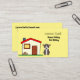 Det här är ett sött hus sitta och ett sitta-affärskort med en söt tecknad husutskrift och en valp med tecknad på en lätt gult. Ditt namn och dina titlar går på ena sidan och din e-postadress och ditt mobilare nummer går på den andra sidan.