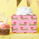 Den här söta wienerns valp i en julhatt är i ett upprepande mönster, på en söt, rosa bakgrund.
