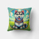 Ett talande exempel på en hund i lycklig med starkt ögon och ett trevligt leende, sitta i en lush grönt under en solig blå himmel. Perfekt för begrepp som djur, glädje och natur.