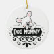 Kute keramisk ornament för djurälskare med en underbar tecknad vit sovande hund med " Hund mamma " på ena sidan och ett anpassade bild av hund med namn och år på den andra sidan.