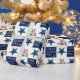 Cute Hund Puppy Pet Photo Festive Star Julen Wrapping Papper. Vacker och festlig blå stjärna. White Merry, Lycklig, Jolly typography. Designen har ett foto av en hund-valp - lägg i hund eller något annat foto till mallen och gör din egen unika jul papper.