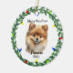 Det här är en berömvärd Pommern-julprydnad med en bild av en pomeransk valp som omges av en julkrans, "Merry Woofmas". Det placeras på en vit bakgrund med en julkrans och ljus som cirkulerar bilden. Doppens namn ligger under tillsammans med datumet och är anpassade till er hund namn. Jultalesättet "Merry Woofmas" är också en platshållare och kan ersättas med ett eget ordspråk. Det här är perfektens gåva till ge till Pommern hund älskare eller till dig själv för att visa ditt älskade sällskapsdjur.