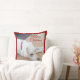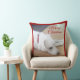 Denna vackra kudde har ett foto av Olive, en vacker labradoblandning som är avslappnad på lövträet golv.