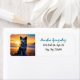 Cute Hund vid Sunset Serene Ocean Beach Returadress Etikett