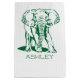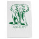 Cute hunter grönt elefantlinje teckning över vitt rand. Anpassningsbar monogram