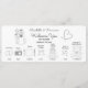 Toppen "Välkommen" från bruden och brudgummen med bild-ikoner på en tidslinje på dagen och snurrande hjärta. Det omvända visas med ett tackmeddelande och serviceordning, känn dig fri att ändra så mycket eller lite som du vill för att tillgodose dina behov i kostym, det kostar inte extra.