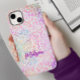 Cute Iridescent Animal print glitter monogram Iphone case. Vacker, modern och coola täckning för den trendviga och konsthundande höftledaren. Denna sofistikerade snyggt skulle vara underbar för flickor som har klassisk och sparsam design. Visa upp din personliga stil, se modern ut, trendig och känn snyggt med en unik design på ett mobilenhetstillbehör eller anpassa den till en annan produkt du vill ha. Lägg till ditt namn och monogrammet med en coola och modern kalligrafi. Det gör perfektens presentidé till en söt 16-årsdag, bröllop, möhippa, årsdagar, babyduschar eller möhippor, valentines day, jul eller som en gåva i allmänhet. OBSERVERA: Det här är platt tryckt grafik - ingen riktig glitter, juveler eller upphöjda delar