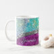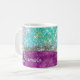 Cute iridescent lila teal faux glitter monogram kaffemugg