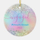 Cute iridescent unicorn glitter jul engagerad julgransprydnad keramik