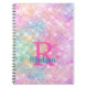 Cute iridescent unicorn rosa faux glitter monogram anteckningsbok