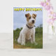 Cute Jack Russell Terrier-fotokort för hälsning. I texten står det "Grattis på födelsedagen", i texten står det "Hoppas du har en underbar dag!" Text kan anpassas.