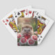A cute hedgehog holding a red garnet heart sits in a patch of red and white carnations.