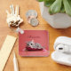 En söt grått och vit tecknad tabby katt lägger på en garnet-färgad kudde med närliggande rosa.