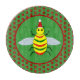 Den här fantastisk-styckningsskivan har ett sött gult med blankt svart ögon och svart ben. antennerna är grönt och rand på biet är alternerande mellan grönt och gult. Bin har en röd och vit hatt och ser ut att ha redo att fira jul. Bakgrunden består av söt röda poinsettia-blommor, var och en med en stark gult.
