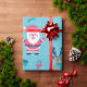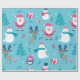 Kute julvarelser. Jultomten, penguin, renar med halsduk, polar, Julgranar med blå bakgrund. Fanny-design