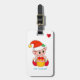 Kute Jullef som håller en presentlåda och ett rött hjärta på vit luggage Tag. Alla redon som ska vara personlig.