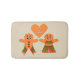 Den här badmattan i fantastisk har en grafisk bild av ett sött gingerbröd par. Pepparkaksgubben har grönt- och rödknappar och grönt samt röda slitna byxor. Dam har söt ögonfransar och har röda läppstift. Hon har en grönt och en röd fringad kjol och överst. Båda har ett stort leende. Det finns ett gingerbröd ovanför paret som visar kärlek för varandra. Det finns en vit skrivning inuti hjärtat som säger "gjord för varann". Det här skulle vara en underbar gåva till ett par på jul.