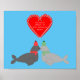 Den här poster har ett par romantiska sälar kyssar. Den ena förslutningen är lätt grått och den andra är mörk grått. Ljuset grått en bär på en grönt scarf och hatt och mörk grått- förseglingen bär en röd halsduk och hatt. Över sälar finns ett par röda och vita polkagrisar i form av ett hjärta som omger ett rött hjärta med vit text inuti som säger "Förseglat med en julkyss. En underbar design för jul och för par att tillbringa sin första jul tillsammans.