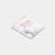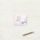 Post-it-anteckningar med ett foto av en ingefärgkattunge sitta på en mjuk vit och röd julhatt. Oskärbar glitterbakgrund för ljus.