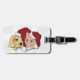 Lätt att anpassa bagagetaggen. Lägg bara till din information! Vintage illustration God jul helgdag-husdjur med två hårig djurvänner, en berömvärd guldmakrill-valp-hund och en söt orange tabby katt eller kattunge, båda har Jultomtarna på sig för att fira vintersäsongen. Bästa vänner för alltid!