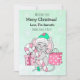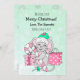 Ett vackert visitkort från hand plockade med en söt festiv mus med en julhatt i candy cane omgiven av gåvor. Lägg bara till namnen i personaliseringsområdet. Rosa julkort.