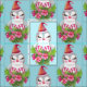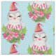 Fabric med en söt och vismisk design med en fin penguin som bär en röd tomhatt. Stående bakom en blombukett med rosa och vita stripade polkagrisar.
