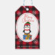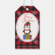 Cute jul Penguin på Red Play Mönster Presentetikett