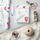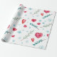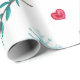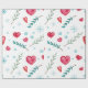 Denna vackra julomslutning har en papper vit bakgrund med söt blå snöflingor, röda hjärtan och botaniska accenter från löv.
